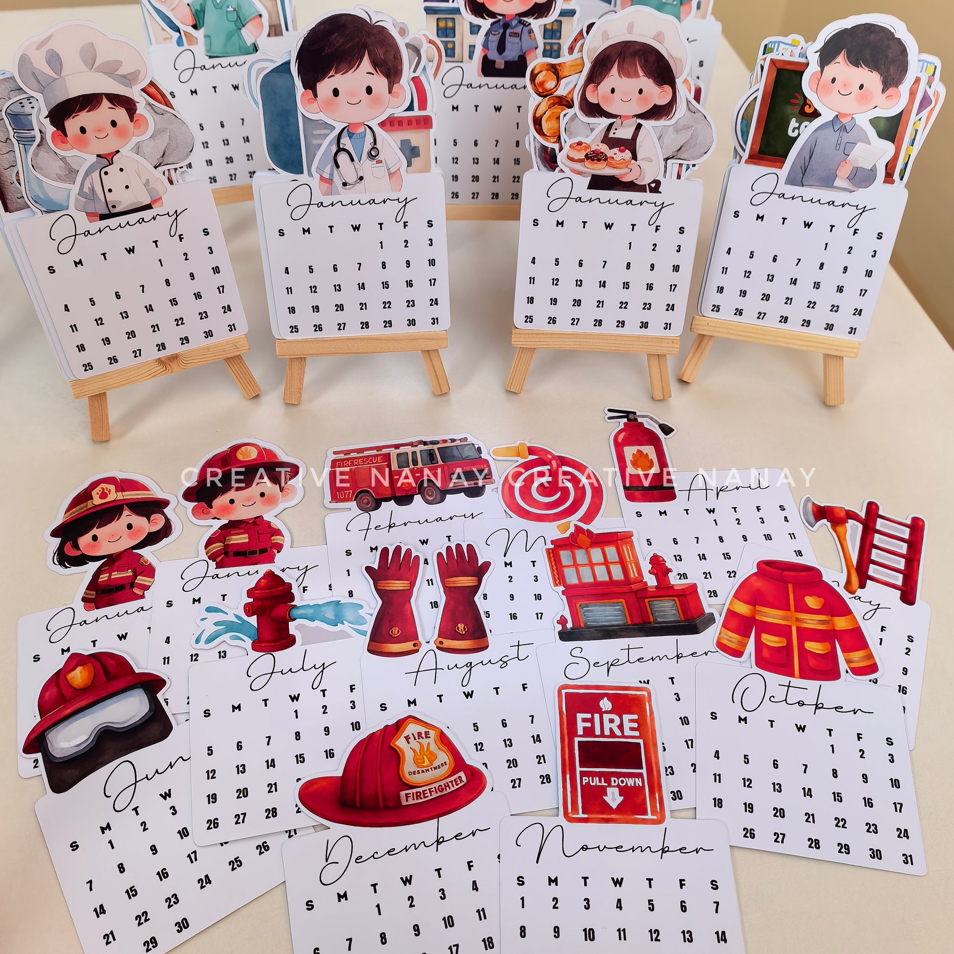 (nurse, doctor, police, firefighter, baker, chef, veterinarian, dentist, teacher,office, farmer, seafarer, engineer/architect, pharmacist, banker )